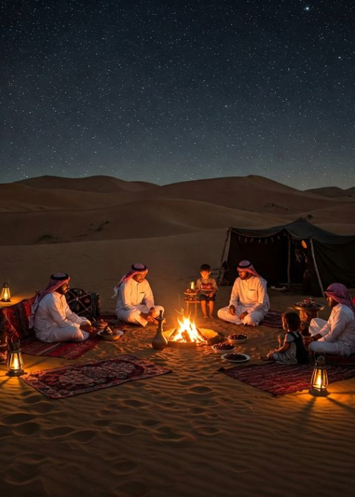 Desert Safari at Night – Rest under the stars in a serene desert camp.