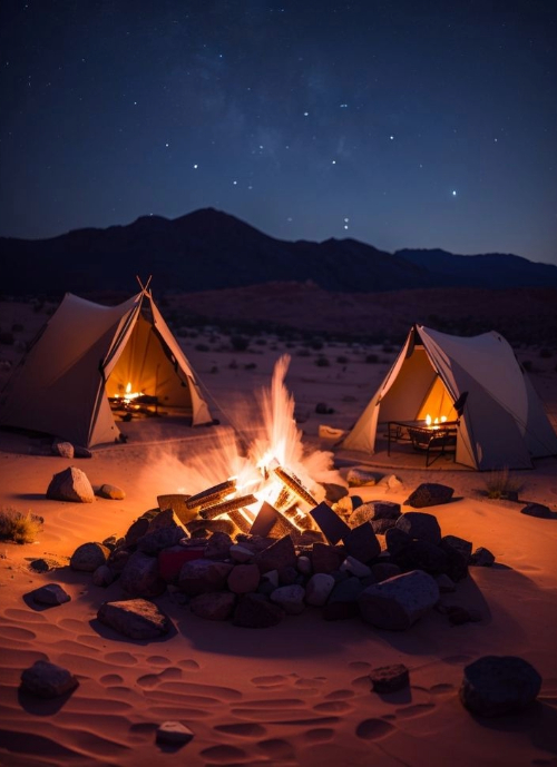 Desert Safari at Night – Rest under the stars in a serene desert camp.